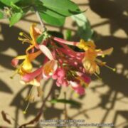 Lonicera ‘Gold Flame’ is a cultivar (cultivated variety) of honeysuckle. Its parentage is a hybrid of different honeysuckle species, most likely including: