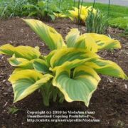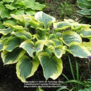 1 2 3 4 50.000 hostas Bookmark Upvote Downvote Upvote Downvote Featured Sun RequirementsPartial or Dappled Shade UsesGroundcover Wildlife AttractantBirds Child plantsone child plant Flower ColorOther: Pale Lavender, Tubular shape. Flower TimeLate spring or early summer, Summer LeavesOther: Upright, Ovate Med.Green-Med.Blue-green with Golden yellow margins. Sun tolerant. Slug resistant., Unusual foliage color, Variegated Life cyclePerennial Minimum cold hardinessZone 3 -40 °C (-40 °F) to -37.2 °C (-35) Plant HabitHerb/Forb Plant Height28 in. tall Plant Spread36-48 in. (90-120 cm) Propagation: Other methodsDivision Awards and RecognitionsA.H.G.A. Hosta of the Year Propagation: SeedsOther info: Seed is viable., Will not come true from seed Share : PreviousHosta ‘Popcorn’ NextDutch Hyacinth (Hyacinthus orientalis ‘Hollyhock’)